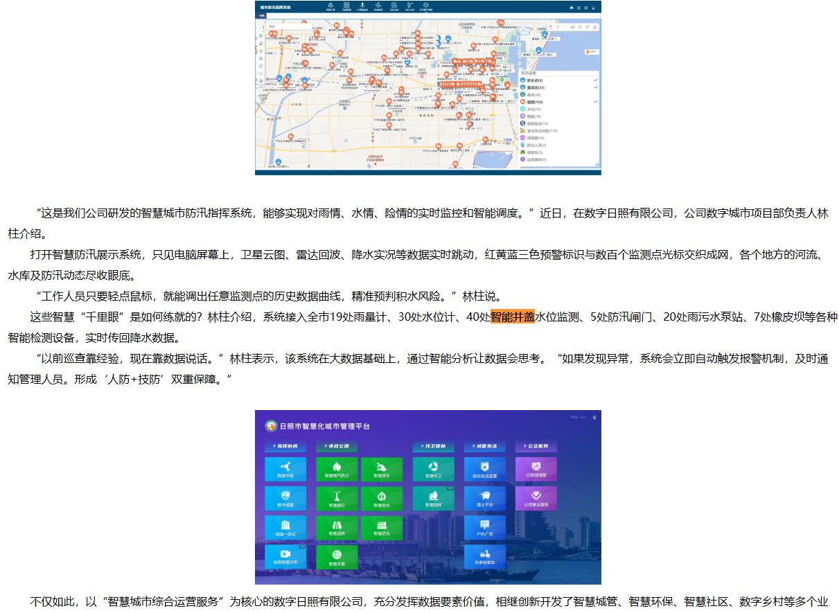 如今,随着新一代信息技术快速发展,越来越多的智能化应用正深刻改变着人们的生产生活方式。这些如同“超能力”般的智慧应用背后蕴藏着怎样的技术奥秘?例如,日照市智慧化城市管理平台接入19处雨量计、30处水位计、40处伟德app下载官网苹果版水位监测、5处防汛闸门、20处雨污水泵站、7处橡皮坝等各种智能检测设备,实时传回降水数据。系统在大数据基础上,通过智能分析让数据会思考。“如果发现异常,系统会立即自动触发报警机制,及时通知管理人员。形成‘人防+技防’双重保障。”
